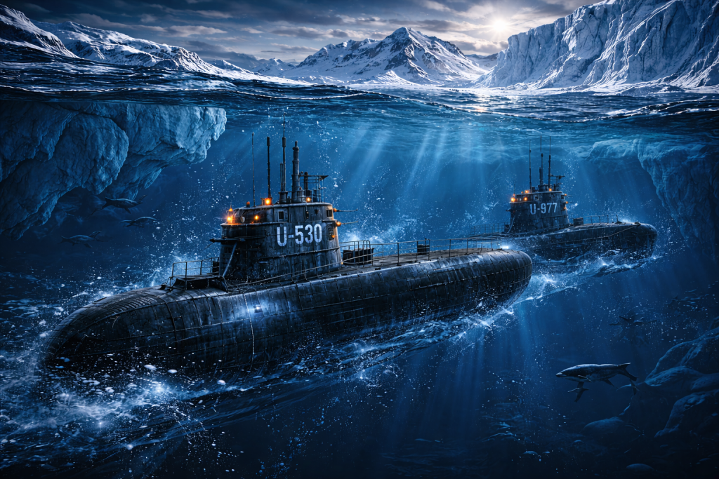 Μερικούς μήνες αργότερα, το καλοκαίρι του 1945 δυο γερμανικά υποβρύχια, το U-530 και το U-977 που έπλεαν στον Ατλαντικό και δεν ήξεραν πού να πάνε, εμφανίζονται στο λιμάνι Ντε Λα Πλάτα της Αργεντινής και γίνονται το έναυσμα για να πλεχτεί μια ωραία φανταστική ιστορία που θα ήταν γουστόζικη σαν μυθιστόρημα, αλλά τελικά ήταν μια ανόητη θεωρία συνωμοσίας, η οποία ωστόσο συνεχίζει μέχρι και σήμερα να εξάπτει τη φαντασία των απανταχού συνωμοσιολάγνων. Ναι, μέχρι και σήμερα αναφέρεται εκείνη η φανταστική βάση των Γερμανών στην Ανταρκτική ως στοιχείο-γεγονός, όμως άλλαξε εντελώς ο λόγος που δημιουργήθηκε η εν λόγω θεωρία, καθώς ο λόγος που φτιάχτηκε ήταν για να τοποθετήσει σε εκείνη τη βάση τον Χίτλερ. Σήμερα δηλαδή, παρόλο που έχει αποσαφηνιστεί το τι συνέβη στο Βερολίνο και πώς αυτοκτόνησε ο Χίτλερ, η ψευδής πληροφορία για την ύπαρξη της βάσης παραμένει ζωντανή και απλώς συνδυάζεται με άλλες θεωρίες συνωμοσίας.
